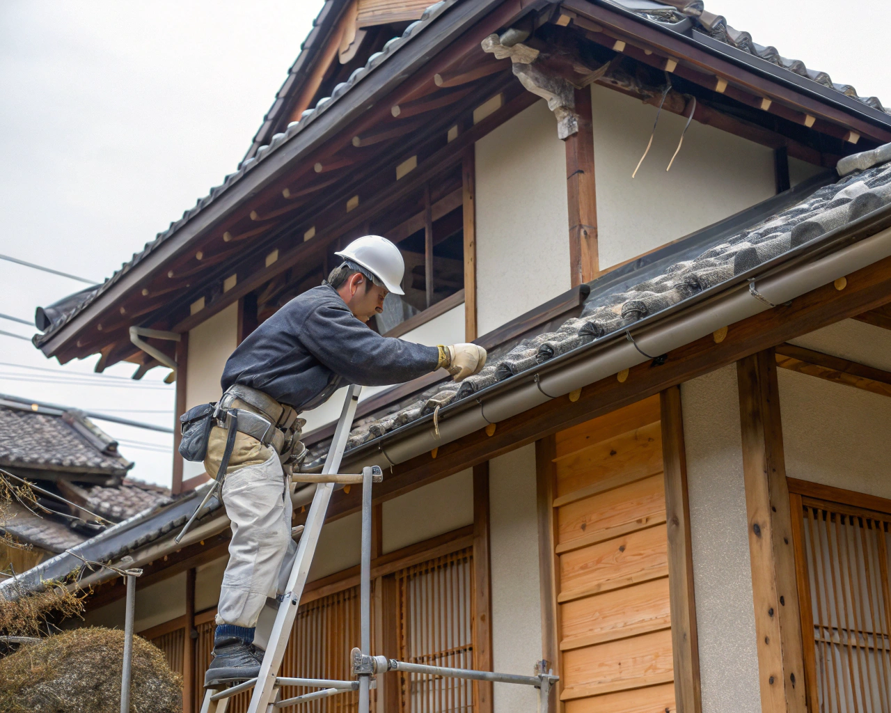 外壁や屋根、玄関まわりの工事は、古民家フルリノベーション費用の中でも「家を守るための保険」のような役割があります。見た目がきれいになるだけでなく、雨漏り防止や耐久性アップにつながるため、後回しにしすぎると結果的に高くついてしまうこともあります。特に古民家の場合、瓦屋根や土壁など昔ながらの工法が使われていることが多く、現代の工法とうまく組み合わせるかどうかで費用が変わります。 外壁は、洗浄と塗装だけで済むケースもあれば、下地の木部が腐っていて張り替えが必要になるケースもあります。屋根も、瓦の差し替え程度で良い場合と、野地板からの交換が必要な場合では、工事内容が大きく変わります。玄関まわりは、引き戸の交換やポーチの補修、庇の補強など、見た目と実用性を兼ねた工事が多く選ばれます。 注意したいのは、外回りは足場代が必ず発生する点です。一度足場を組むなら、屋根と外壁を同じタイミングでまとめて工事した方が、トータル費用を抑えやすくなります。また、雨漏り跡や外壁のひび割れがある場合は、見た目だけの補修ではなく、原因となる下地の劣化までチェックしてもらうことが重要です。古民家断熱リフォーム費用と耐震リフォーム費用の考え方で家の性能を底上げする
